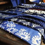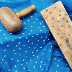 Modrotisk dospělí 500Kč Tisk se provádí rezervou „papem“ poté se potisknutý materiál barví v indigu
